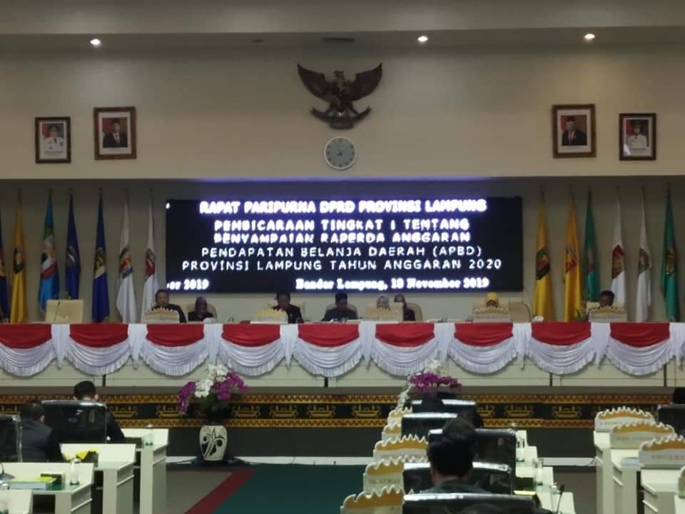 Rapat Paripurna lanjutan Pembahasan Anggaran Pendapatan dan Belanja Daerah Provinsi Lampung Tahun Anggaran 2020 kembali digelar pada hari Senin, 18 November 2019. Agenda rapat paripurna kali ini adalah Pembicaraan Tingkat I tentang Penyampsian Raperda APBD Provinsi Lampung TA 2020.