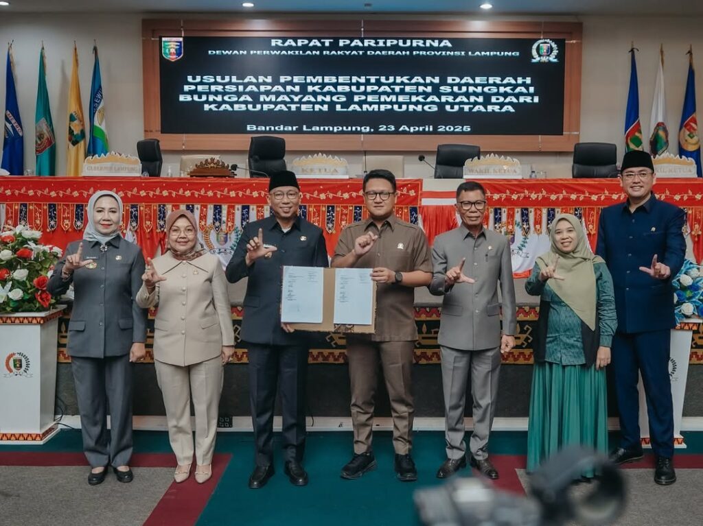 Rapat Paripurna DPRD Provinsi Lampung, usulan Pembentukan Daerah Otonomi Baru (DOB) Kabupaten Sungkai Bunga Mayang Pemekaran dari Kabupaten Lampung Utara.