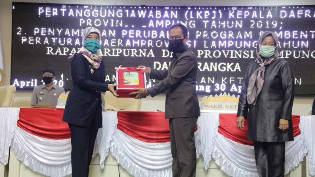 DPRD Provinsi Lampung menggelar Rapat Paripurna menggunakan aplikasi Virtual Meeting pada Kamis, 30 April 2020. Hal tersebut dilakukan sebagai dampak pandemi virus Covid-19 yang sedang terjadi sehingga pelaksanaan Rapat Paripurna dilakukan dengan video conference. Dalam Rapat Paripurna itu, Wakil Gubernur Lampung, Chusnunia Chalim menyerahkan langsung dokumen Laporan Keterangan Pertanggungjawaban (LKPJ) Kepala Daerah Provinsi Lampung Tahun […]