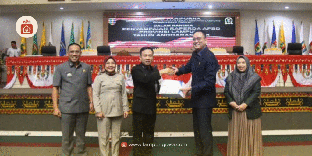 Dalam Rapat Paripurna ini Pemerintah Provinsi Lampung melalui Sekretaris Daerah Provinsi Lampung Marindo Kurniawan Menyerahkan Dokumen Rancangan Peraturan Daerah (Raperda) Anggaran Pendapatan dan Belanja Daerah (APBD) Tahun Anggaran 2026 kepada DPRD Provinsi Lampung.