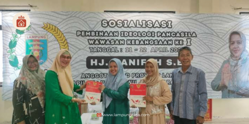 PESAWARAN, – Sekretaris Komisi I DPRD Lampung, Hanifah, menyosialisasikan Pembinaan Ideologi Pancasila dan Wawasan Kebangsaan (PIPWK) di Desa Tambangan, Kecamatan Padang Cermin, Pesawaran, Sabtu (12/4/2025).